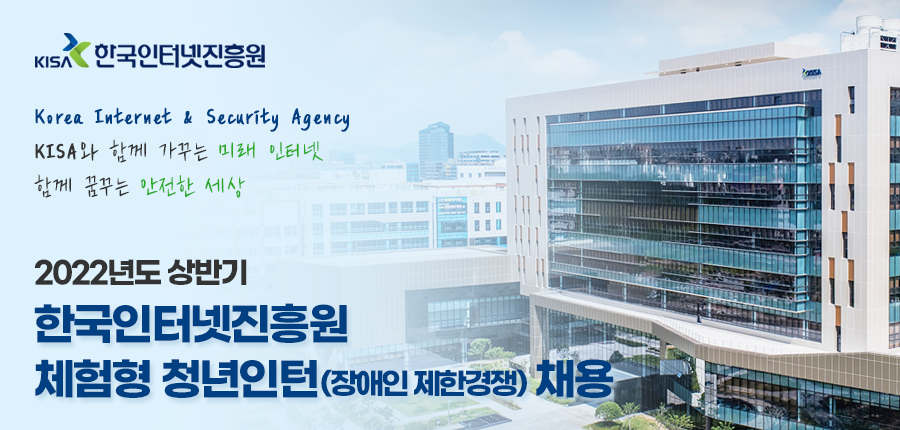 우리 한국인터넷진흥원(KISA)은 건전하고 안전한 사이버 세상을 만들기 위해 정보보호, ICT분야에 필요한